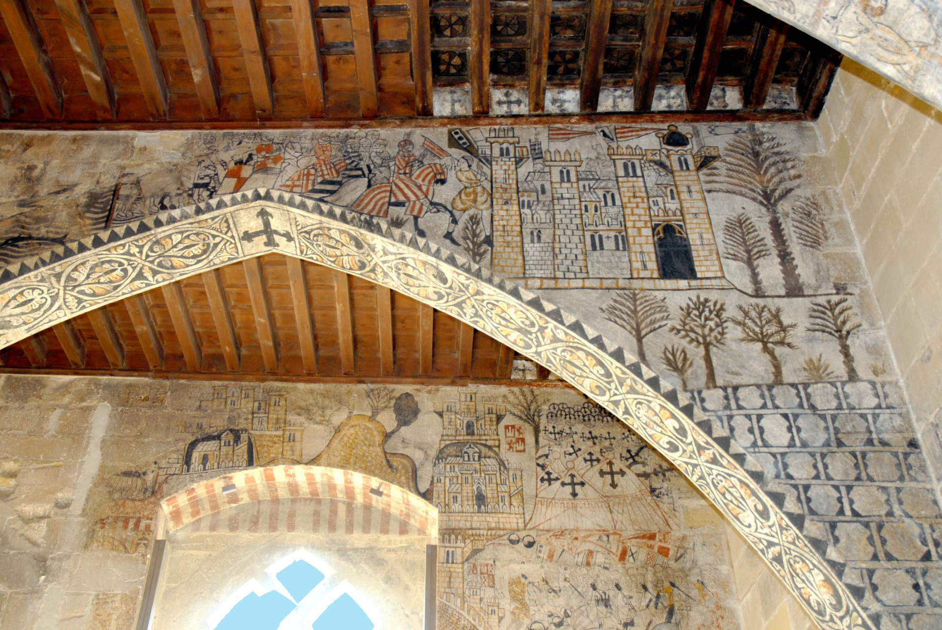 En sus dependencias se desarrollan una serie de pinturas fechadas desde finales del siglo XIII has ta la segunda mitad del siglo XIV de estilo gótico lineal o franco- gótico, con temática religiosa y civil de escenas caballerescas e históricas relativas a las campañas de Jaime I en Valencia.