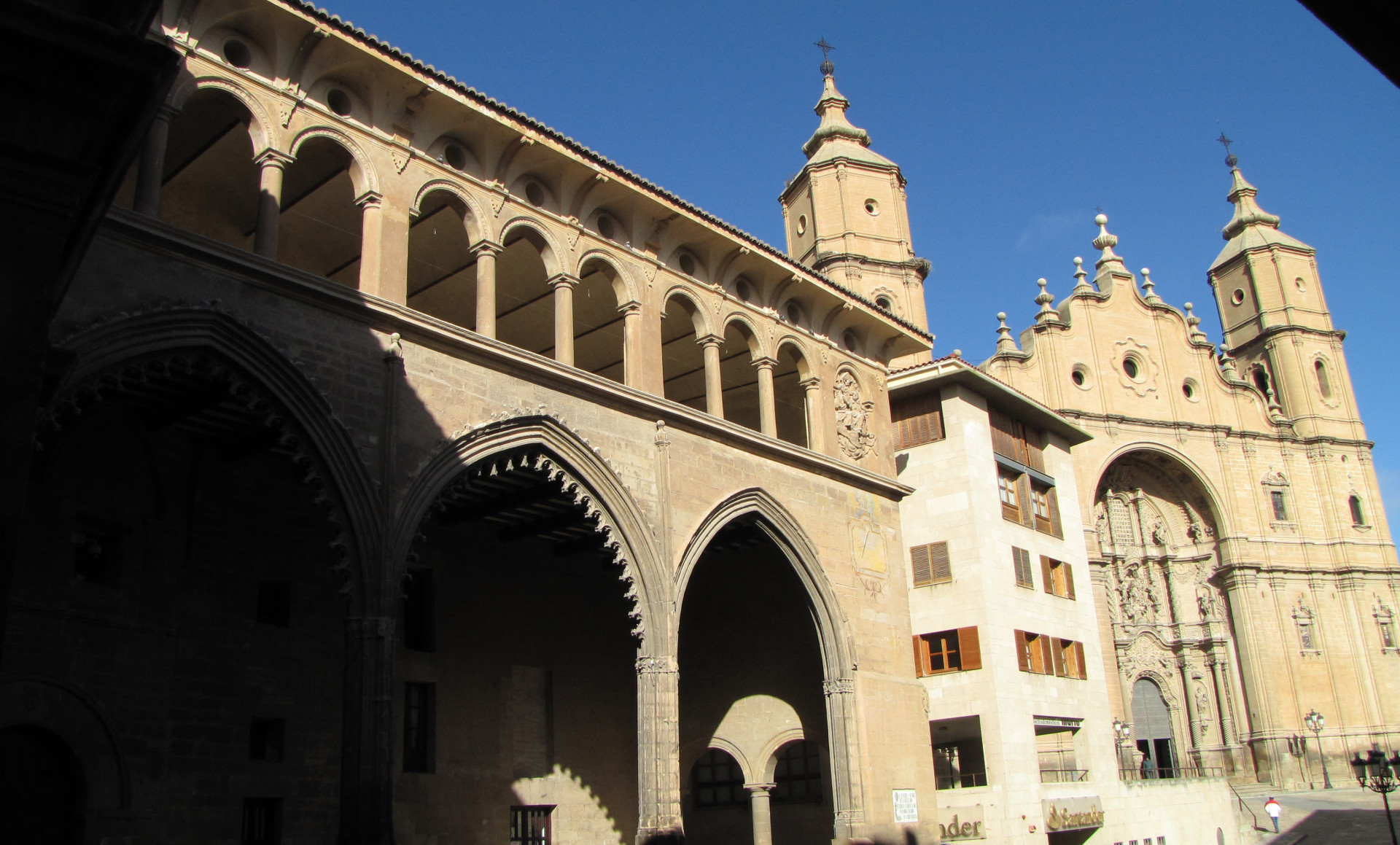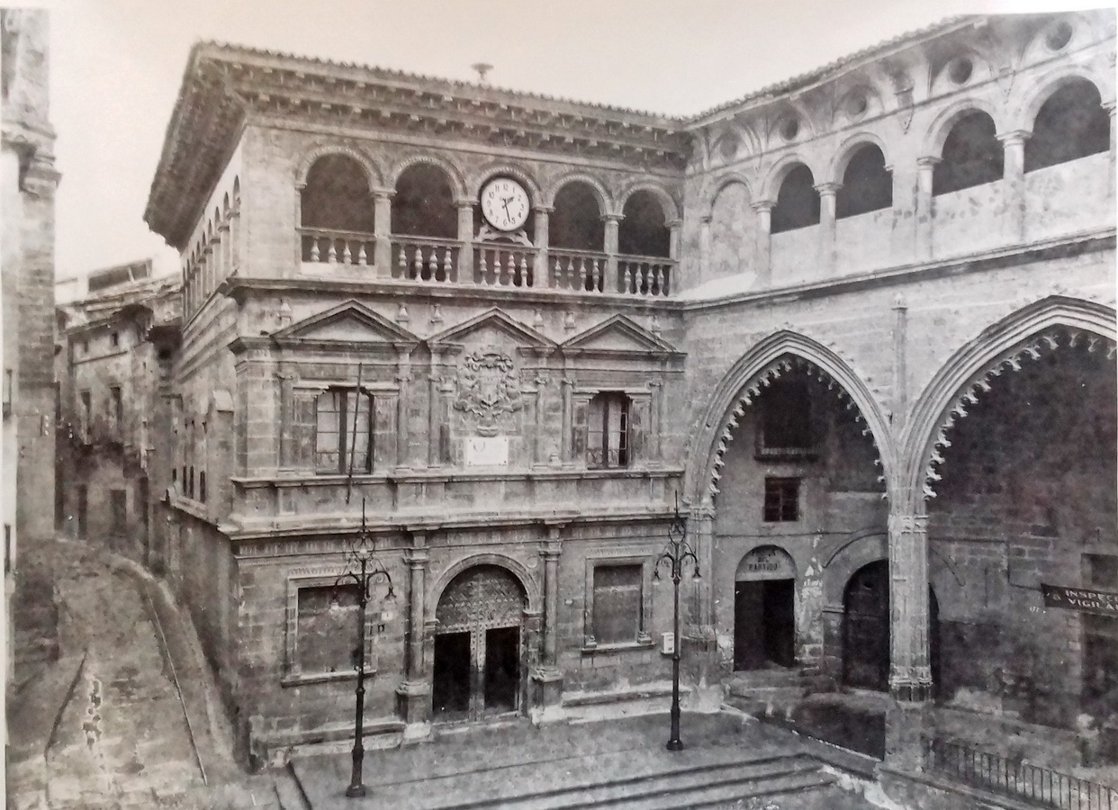 La lonja, se encuentra igualmente en la plaza de España, es un magnífico resto de arquitectura civil gótica. Se realiza en el siglo XV y es un trasunto de las “loggias” italianas cuatrocentistas. Consta de tres esbeltos arcos apuntados, dos de los cuales tienen su intradós decorado con arquillos lobulados y está rematada por arquería corrida del siglo XVI y gran alero con lunetos del siglo XVIII.